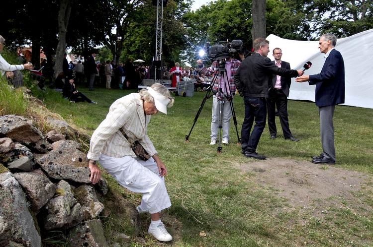 Den deler de for øvrigt også med både fagbevægelsen og de forskellige interesseorganisationer, der er repræsenteret ved det politiske folkemøde i Allinge på Bornholm. Dansk Folkeparti stikker ud ved helt uden blusel at spille på alle klicheer om sig selv. I stedet for en pavillon, som de fleste grupper foretrækker, har Dansk Folkeparti en campingvogn med. Den er dannebrogsmalet. Og har roliganmærke bagpå.