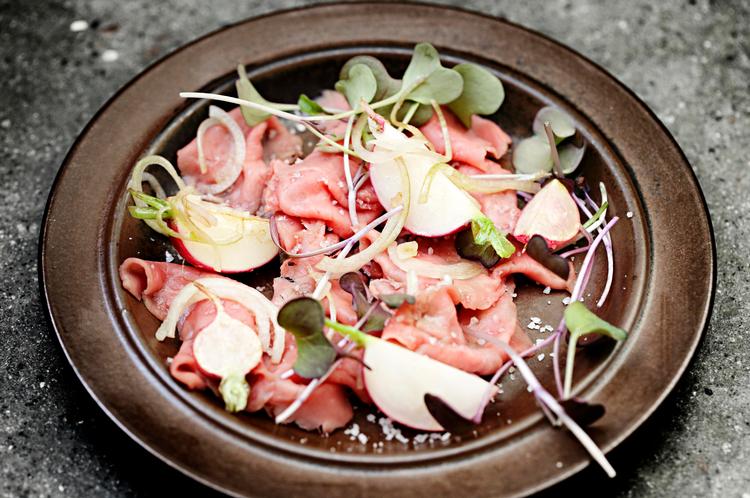Hvis du ikke har mulighed for at skære kødet meget fint på en pålægsmaskine, kan det hjælpe at give det nogle tæsk.