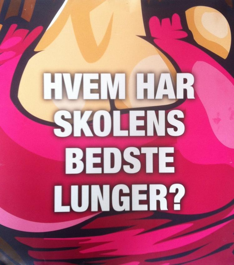 Plakaten, der viser brysterne med teksten »hvem har skolens bedste lunger«, skulle få kommunens folkeskoleelever til at kvitte smøgerne.