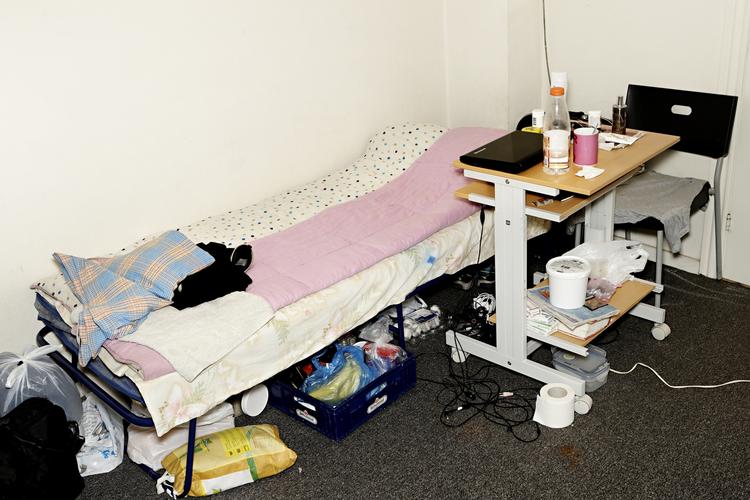 Så snart man træder ind af døren, ser man dog straks de ulæste reklamer på gulvet, kakerlakkerne, der marcherer langs væggene, og det store hul i loftet, som en brand i begyndelsen af måneden forårsagede.