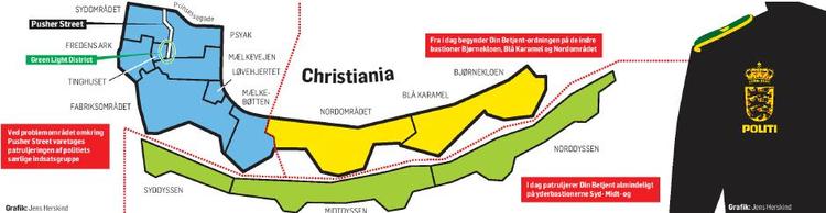 Københavns Politi tager fra i dag hul på en ny etape i lokalbetjent-ordningen Din Betjent på Christiania. Lokale betjente fra Station Amager vil i den kommende tid indlede en patruljering på de indre bastioner på arealet kaldet Bjørnekloen, Blå Karamel og Nordområdet.