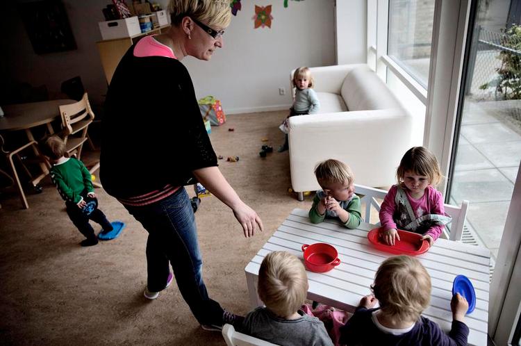 På en helt almindelig mandag eftermiddag efter klokken 16 er der ni vuggestuebørn på sommerfuglestuen i den integrerede daginstitution Grønnegården i Sorø. Alle skal have mad, skiftes, tages op fra deres lur, trøstes, leges med og krammes. Men der er kun pædagogen Karina Jensen til at gøre det.