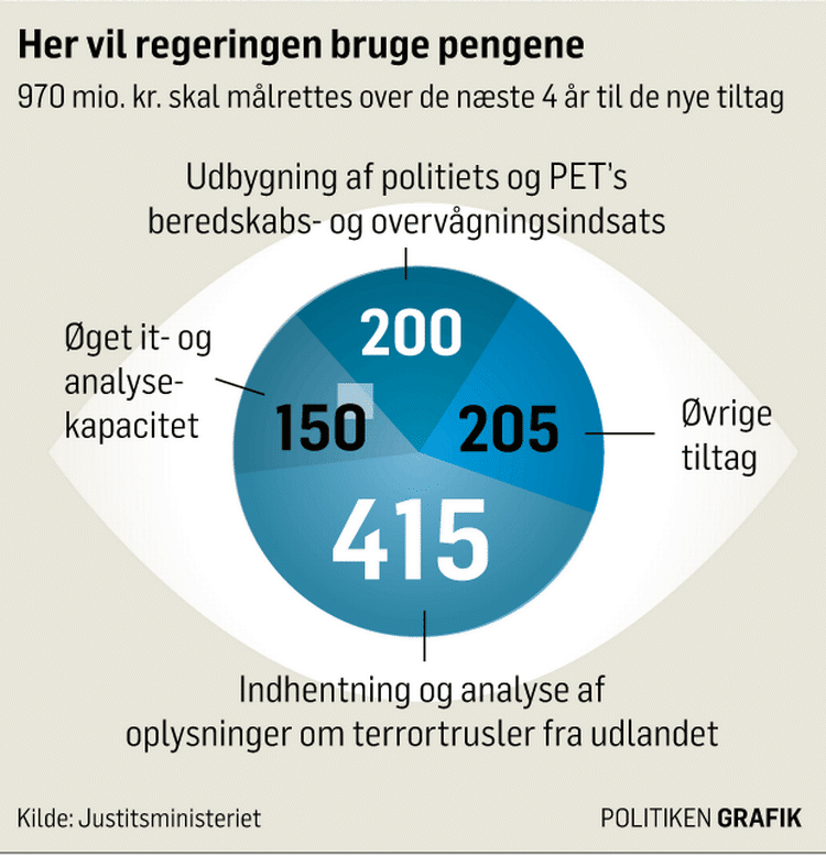 1. 200 mio.kr. til udbygning af politiets og PET’s beredskabs- og overvågningsindsats.
