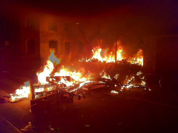 Tidligere på aften byggede ballademagere barrikader af cykler, hegn fra byggepladser og skraldespande ved Prinsessegade og Sankt Annæ gade, fortæller politiken.dk's reporter.
