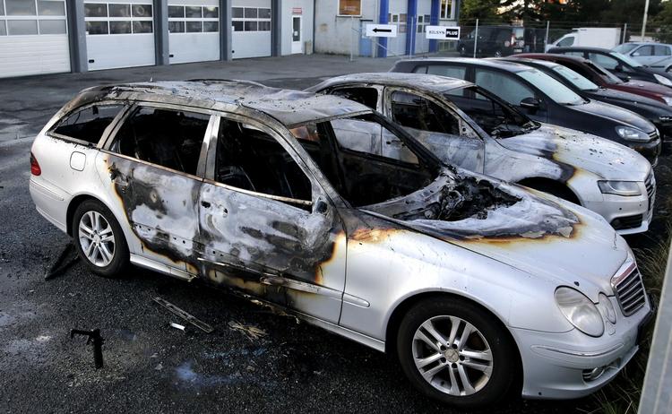 »Man har sat ild til flere biler, og i alt er otte biler brændt ud«, siger han og tilføjer, at gerningsmændene er trængt ind på grunden ved at klippe hul i hegnet.