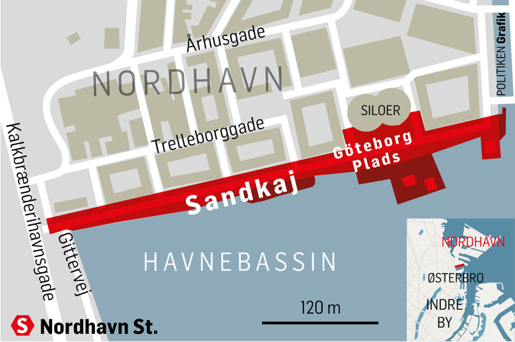 Forbuddet omfatter Sandkaj og Göteborg Plads.