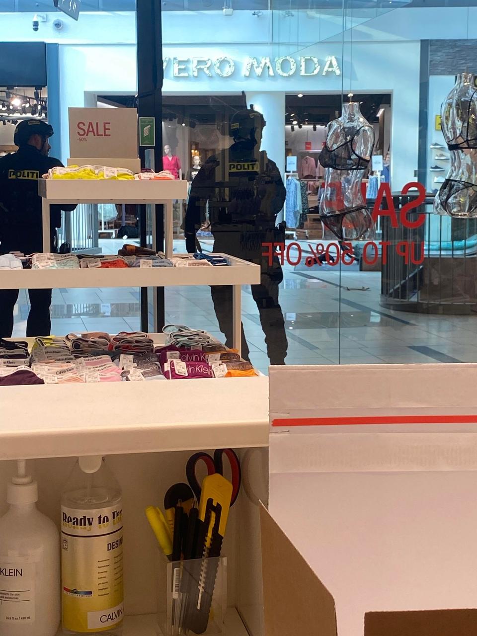 »Jeg ser en politibetjent på overvågningen fra baglokalet og går ud med hænderne over hovedet. Der ligger sandaler, tasker, klapvogne og væltede mannequiner over det hele. Foran rulletrappen fører et stort blodspor ind i Vero Moda. I en af butikkerne ligger en mand med en jakke hen over hovedet. Jeg begynder at tude. Han har bare gået og shoppet, og der ligger han helt alene midt i kaos og har mistet livet«.