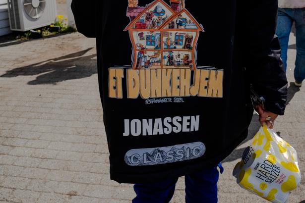 I en kæmpe lagerhal for foden af bakken, hvor der er garderobe til tasker og tøj, beder to knægte fra Trondheim mig om at tage et foto af dem. De poserer med stålsat blik og svulmende biceps og bralrer om, at de fester fem til syv gange om ugen i alle fem uger.
