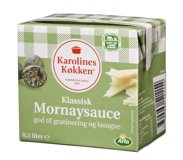 Når lasagnen skal smækkes hurtigt sammen, sker det ofte i samarbejde med en god mornaysauce, og det nemmeste er en færdiglavet én, som den fra Karolines Køkken.