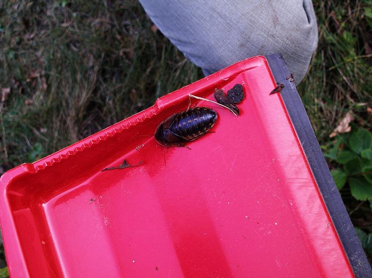 Den var svær, og jeg måtte have hjælp af Ole nabo, der er biolog og god til insekter. Han fandt frem til, at det sikkert er en kakerlak - endda en dubia-kakerlak, som ikke er hjemmehørende i Danmark. Vore kakerlakker er meget mindre.