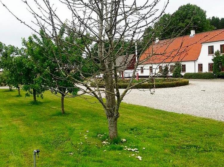 Vi oplevede i foråret noget mystisk med vores frodige moreltræ. Lige før blomsterne foldede sig helt ud, gik alt i stå. Blomsterne visnede, og der kom ikke et eneste grønt blad. Nu en god måneds tid senere vælter det, som man kan se på billedet, op med svampe under det visnede træ. Er der en sammenhæng? Har svampene først i det skjulte gjort kål på træet, og nu efter endt gerning triumferer de i det fri? Der er ikke skygge af svampe under de andre frugttræer.