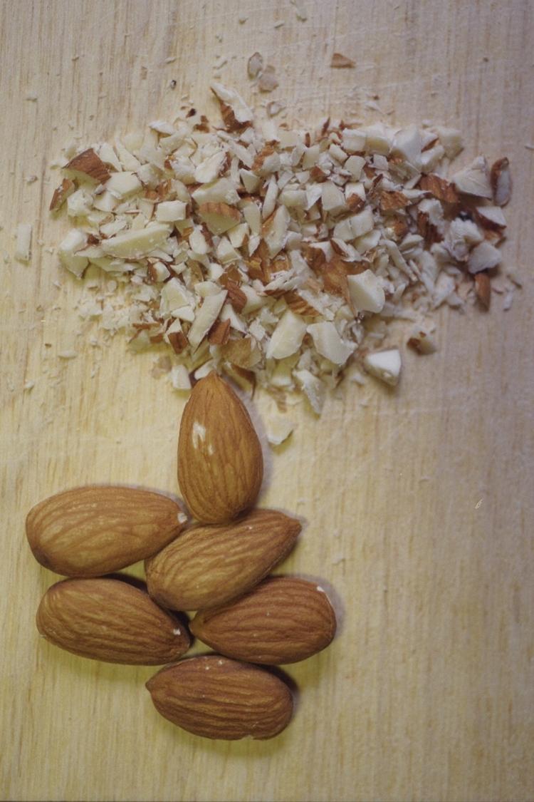 Læg mandlerne i blød natten over. Smut dem derefter, og kom dem i en foodprocessor, indtil de bliver til mel. Giv maskinen en lille pause. Fortsæt, indtil mandlerne begynder at afgive fugt. Tilsæt honningen lidt ad gangen. Spis marcipanen, som den er, eller rul en roulade med tørret abrikosfyld.
