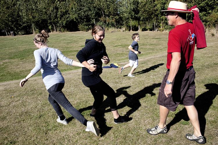 Seniorprojektleder Lars Hazelton fra Gerlev Legepark er ræven med det røde tørklæde, og Lou Knudsen, Tanja Sindal og Thomas Laursen tager flugten.