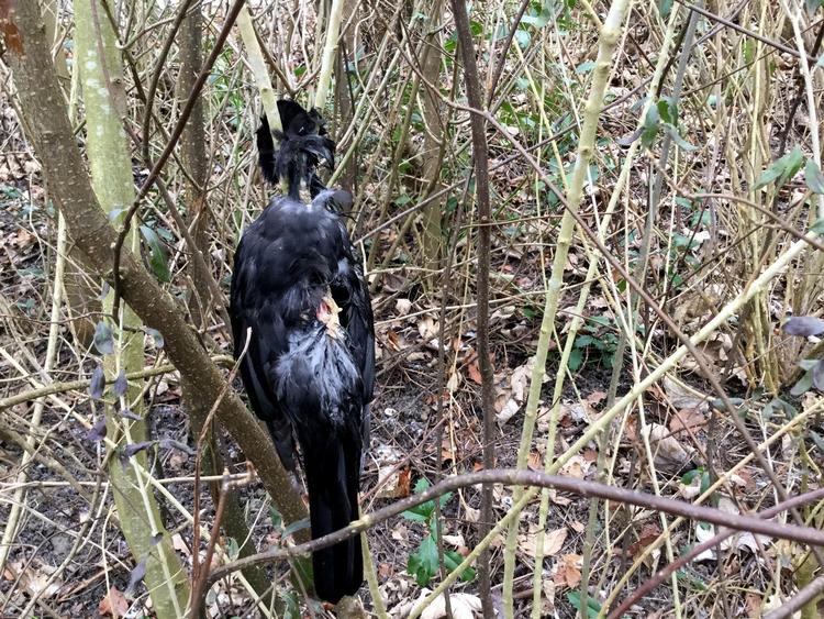 Bent Nielsen: Forleden dag så jeg dette mærkelige syn i et krat bag vores have, en solsort hængt op i en kløftet gren som på foto. Den hænger ca. 1,2 meter over jorden, og krattet er tilsyneladende utilgængeligt at lande i for større fugle. En kat kan ikke kravle i kvistene, og børn ses meget sjældent i området. Hvordan kan det foregå?