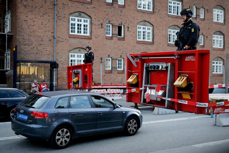 Et par politibetjente med automatvåben hævet over jorden overvåger hver enkelt bil, der lukkes igennem en interimistisk sluse af betonklodser. Kun én bil kan komme igennem ad gangen.