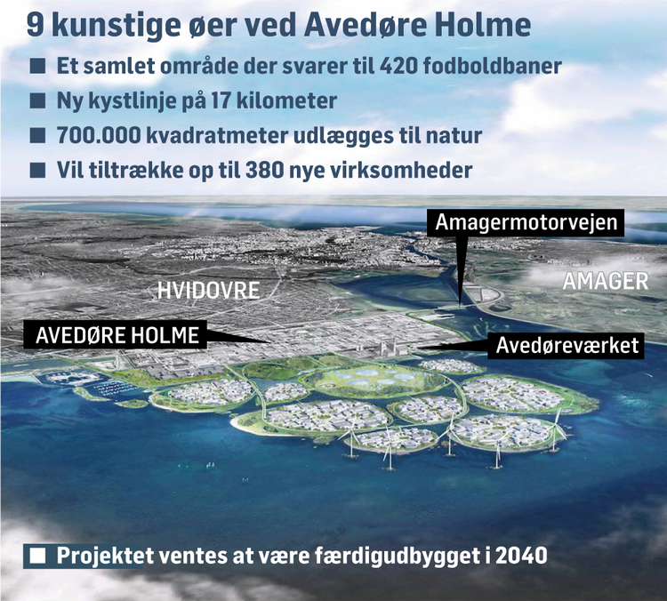 Erhvervsprojektet hviler på skabelsen af ni kunstige holme, som vil blive anlagt ud for Avedøre Holme. I alt tre millioner kvadratmeter skal opfyldes med jord.
