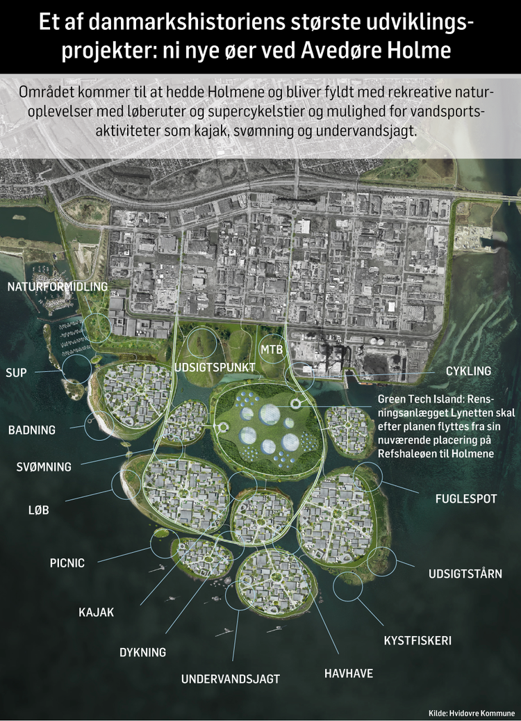 Projektet hedder Holmene og er et samarbejde mellem Hvidovre Kommune, Københavns Kommune og regeringen med opbakning fra både Dansk Industri, Dansk Metal og PensionDanmark. Den fælles vision er at skabe »et af Nordeuropas største, grønneste og mest innovative områder«, siger borgmester i Hvidovre Kommune Helle Adelborg (S).