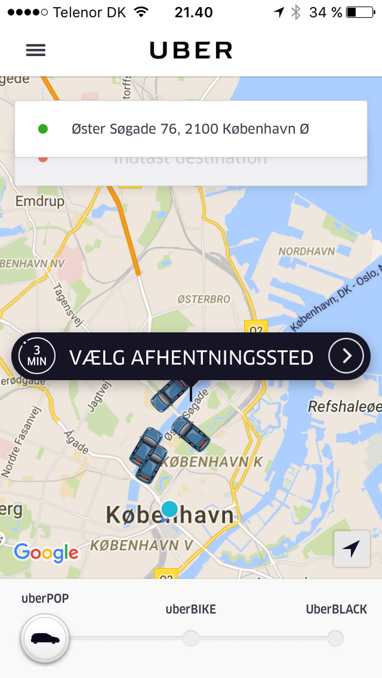 »Ja ja, du har kunder i biksen, vi ses«, lyder det stumt fra telefonen, der sidder i en holder i bilvinduet, da Politiken fredag aften snupper en Uber i ly for regnen.