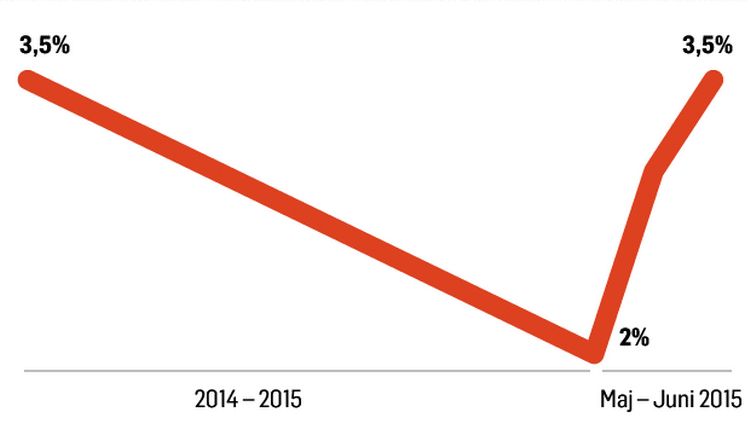 I starten af maj lød den toneangivende rente på et 30-årigt realkreditlån med afdrag på 2 procent, og realkreditinstitutterne havde endda åbnet for lån med en rente på 1,5 procent. Nu er 3,5 procentslånet tilbage.