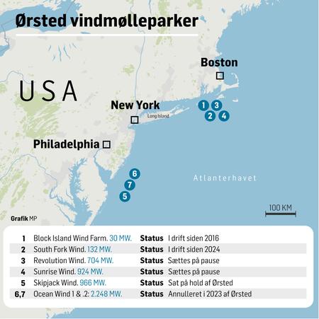 Det sker, efter at det amerikanske indenrigsministerium har meddelt, at lejekontrakter for fem havvindmølleparker sættes på pause.