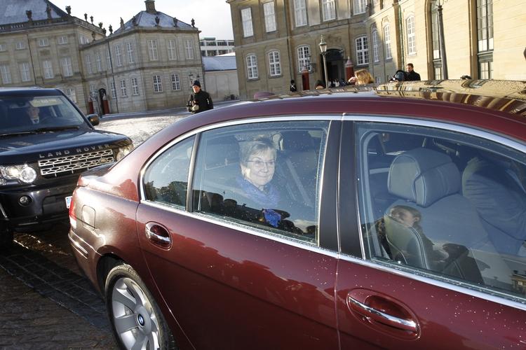 Jelved har netop forladt Christian VIII’s Palæ på Amalienborg, hvor hun har været i tiltrædelsesaudiens hos rigsforstander prins Joachim sammen med Helle Thorning-Schmidt (S).