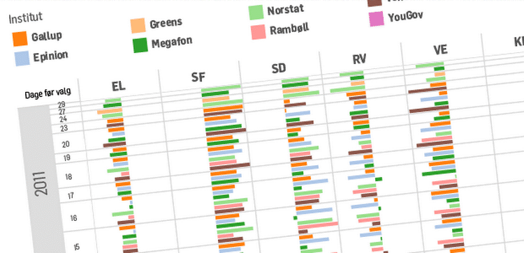 Dataviz: Vi drukner i meningsmålinger»Hvis Venstre havde haft bedre meningsmålinger op til valget, så havde Venstre også klaret sig bedre på valgdagen. Det viser vores studier; at folk går op i meningsmålingerne, og derfor er det vigtigt, at målingerne er ordentlige«, siger han.