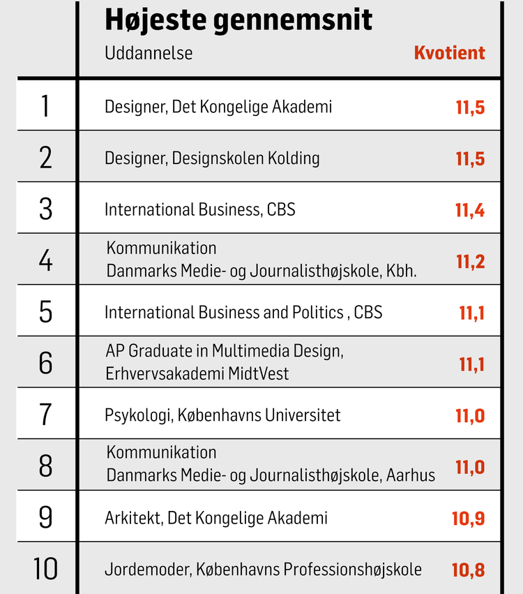 For at komme ind på psykologi, kommunikation eller international business skal man kunne vise et karakterblad med meget flotte præsentationer.
