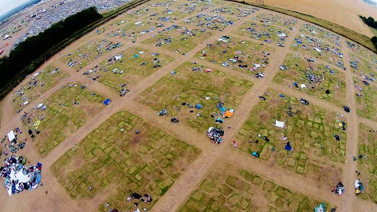 SE NØJE PÅ dette billede. Det er et stykke græs, der bærer mærker efter mennesker: Det er inddelt i felter, der er spor efter telte, og der er skrald spredt ud over området. Der er to ting, som jeg hæfter mig ved. For det første er der alt det skrald, som ikke er på billedet. Billedet er nemlig taget mandag 7. juli kl. 13.00 over område E på Roskilde Festivals campingområde.