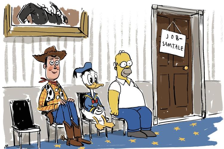 Donald Trump er efterhånden ved at løbe tør for kandidater til stillingen som chefstrateg. Tegning: Mette Dreyer.