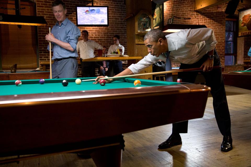 Udsigten til sejr var større i 2014, da Obama ifølge officielle oplysninger gjorde alt for at banke John Hickenlooper, Colorados guvernør og Denvers tidligere borgmester - på en bar i Denver - mens han fløjtede til Van Morrisons 'Brown Eyed Girl'.
