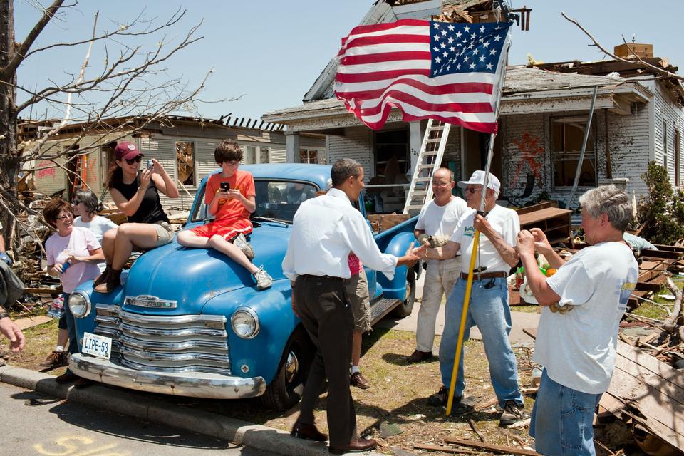 Nogle år før stod han midt i dem. Og hilste på en 85-årig mand, der havde gemt sig i et skab, mens tornadoen ødelagde hele overetagen og det halve af stueetagen i huset i Missouri.
