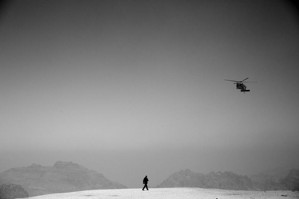 Præsidentens helikopter, Marine One, på vej til at lande i Petra, Jordan, der var sidste stop på præsidentens rejse til Mellemøsten i 2013.