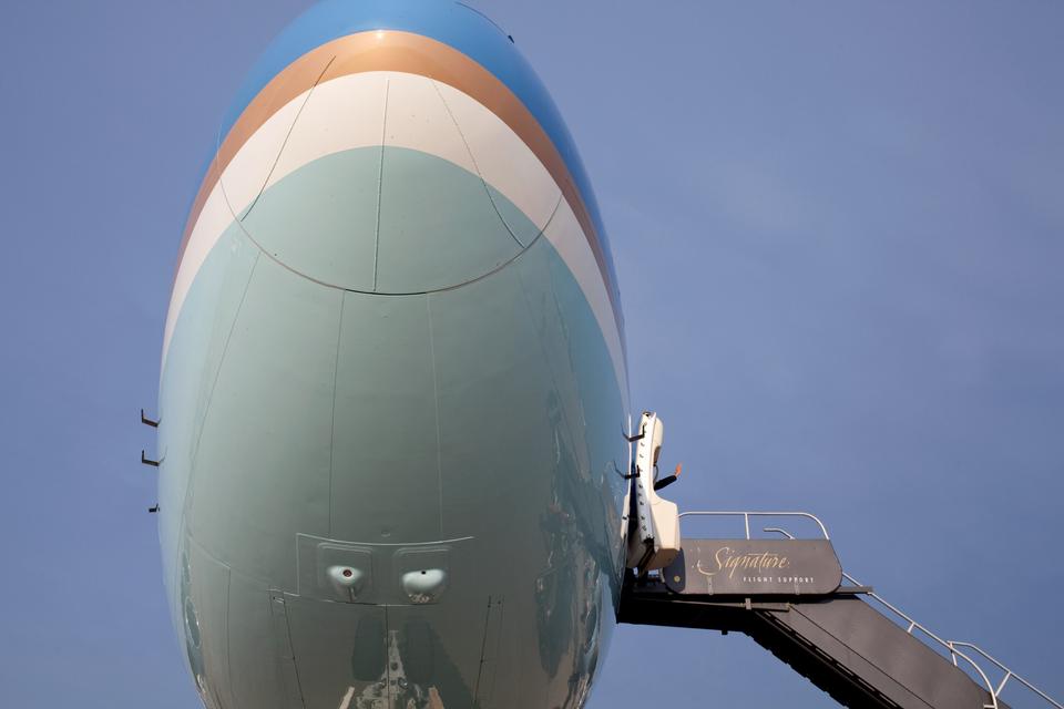Her tages der udramatisk afsked med pave Frans, der transporteres hen til sit fly på flyvestation Joint Base Andrews i Washington - i en Fiat.