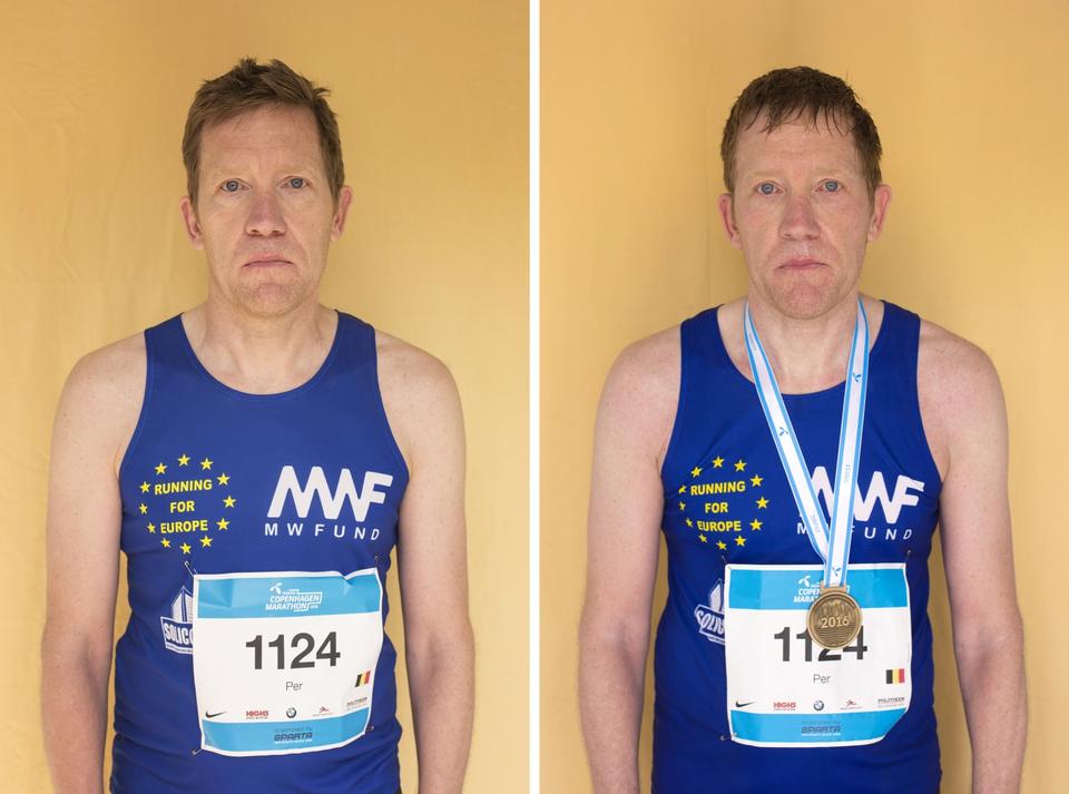 SES! »Det var hårdt, men sjovt. Vi ses!«. Per Haugaard, 52 år, fra Bruxelles i Belgien løb sit 12. maraton i går på 4 timer og 20 minutter, hvilket var 10 minutter mere, end han havde regnet med på forhånd, men han erkendte også, at der har været lidt travlt nede i EU på det seneste.