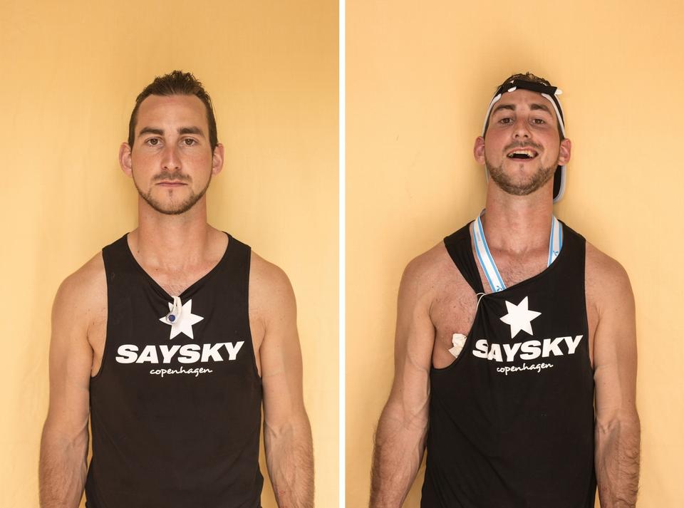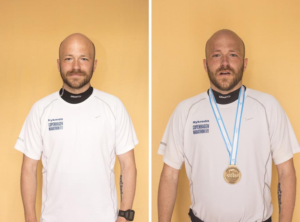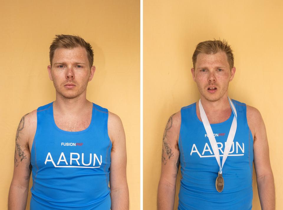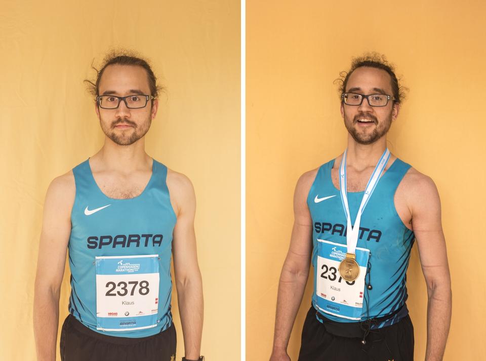 TRÆT. »Træt. Varmt. Stolt«. Simon Persson, 31 år, maraton nummer 262, Aalborg og stifter af løbefællesskabet Aarun.