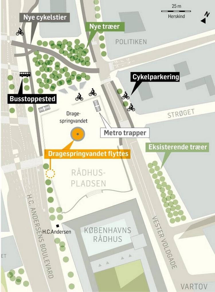 Det var et enigt Teknik- og miljøudvalg, der i 2016 vedtog den endelige plan for, hvordan Rådhuspladsen skulle se ud efter den nylige indgivelse af Cityringen, da flytningen blev bestemt.
