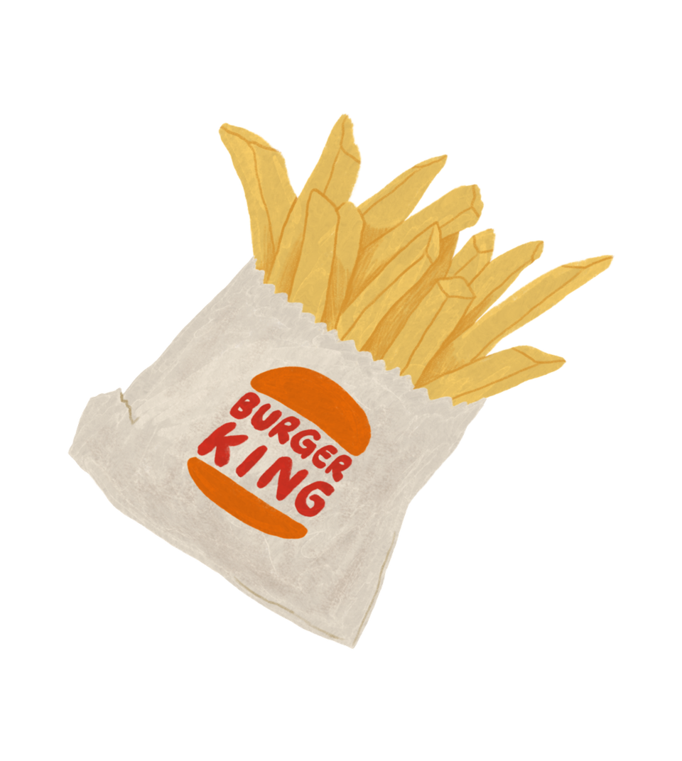 Mens McDonald’s-pomfritten har et særegent udtryk, der kan genkendes på lang afstand, er vi hos den umiddelbart største konkurrent – Burger King – ovre i et mere klassisk hjørne: Tænk frysediskpomfrit, altså lidt større og lidt tykkere end hos McD, uden at vi kommer over i plankerne kendt fra grillbaren.