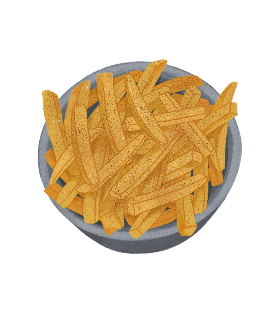 Siden 1600-tallet har belgiere, franskmænd, tyskere og spaniere kæmpet om ophavsretten til de stegte, aflange kartoffelskiver, for pomfritten er – lad os nu være ærlige – en opfindelse på niveau med hjulet. Ét stykke kartoffel. Så mange muligheder. Grove? Tynde? Bølgede? Salt eller rigtig meget salt? For slet ikke at tale om dyppelse!