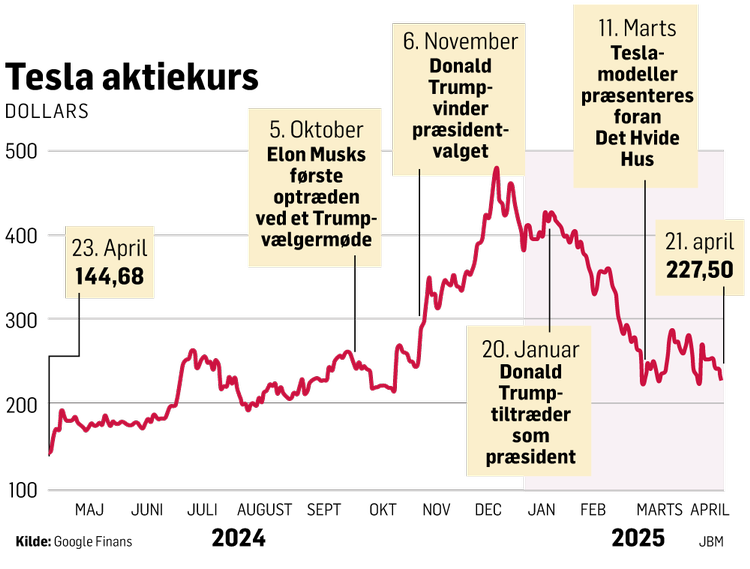 Trods de umiddelbart skuffende tal i regnskabet er Tesla-aktien tirsdag steget med 4,6 procent, men er siden årsskiftet faldet med over 40 procent.