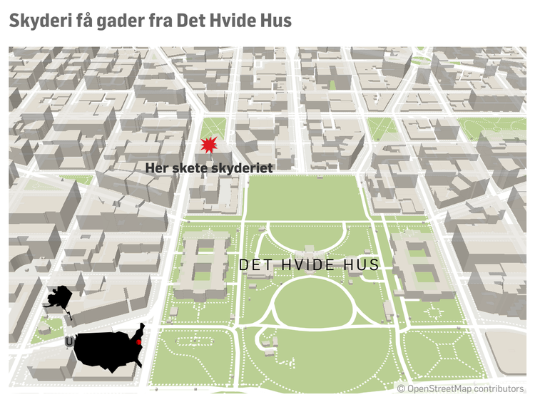 To soldater fra USA’s nationalgarde er i kritisk tilstand efter at være blevet skudt i Washington, D.C, bekræfter FBI-direktør Kash Patel ifølge Reuters. Skyderiet fandt sted tæt på Farragut Square, som er et populært frokoststed for kontoransatte. Det ligger kun nogle gader fra Det Hvide Hus.