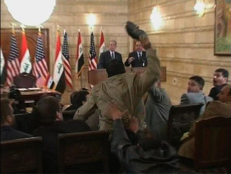 Journalisten, Muntazer al-Zaidi, skabte voldsom opstandelse, da han i går kastede sine sko efter den amerikanske præsident, George Bush, dog uden at ramme.