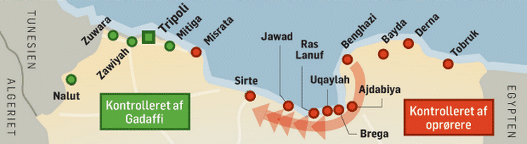 I Libyen rykker oprørerne nu langsomt, men sikkert mod vest og hovedstaden Tripoli.