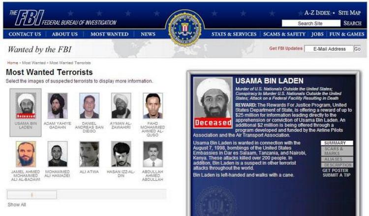 Osama bin Laden har i mange år været i toppen af FBI's Most Wanted-liste over terroreftersøgte.