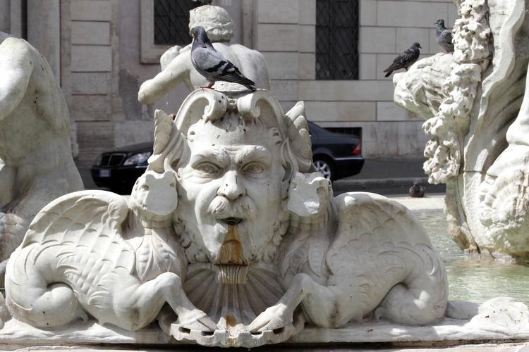 En ukendt gerningsmand huggede i weekenden store stykker af en gammel vandkunst på Piazza Navona i Rom.