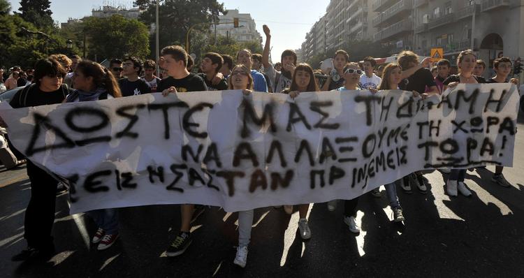 På gaderne i Grækenland reagerer folk på de drastiske nedskæringer i det offentliges budgetter.
