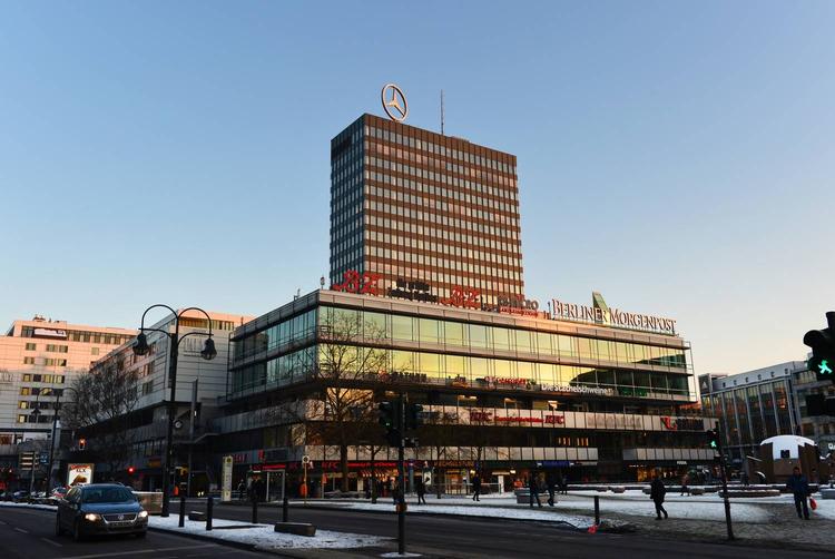 Der er ild i toppen af det 21-etagers ikoniske højhus Europacenter i Berlin.