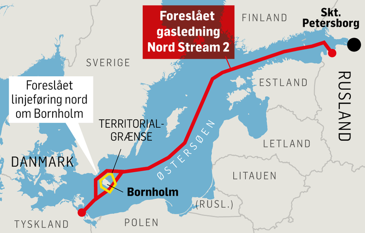 Selskabet søgte i april sidste år om lov til at føre en rørledning syd om Bornholm. Men få måneder efter vedtog Folketinget en lov, der gjorde det muligt at sige nej til den rørledning af sikkerhedspolitiske grunde.