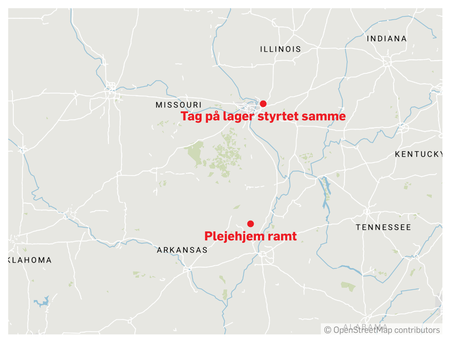 Ifølge AP har tornadoen ramt plejehjemmet Monette Manor i byen Monette i den nordøstlige del af delstaten. Plejehjemmet har cirka 90 sengepladser.