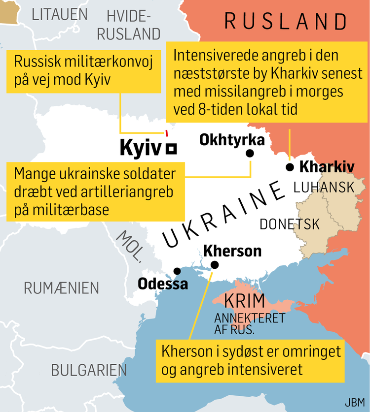 Det er tirsdag formiddag ikke oplyst, om nogen er blevet dræbt eller kommet til skade i de påståede missilangreb fra Rusland. Sinegubov siger, at Kharkiv indtil videre holder stand mod Ruslands offensiv.