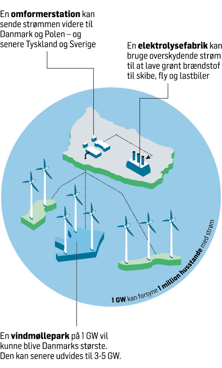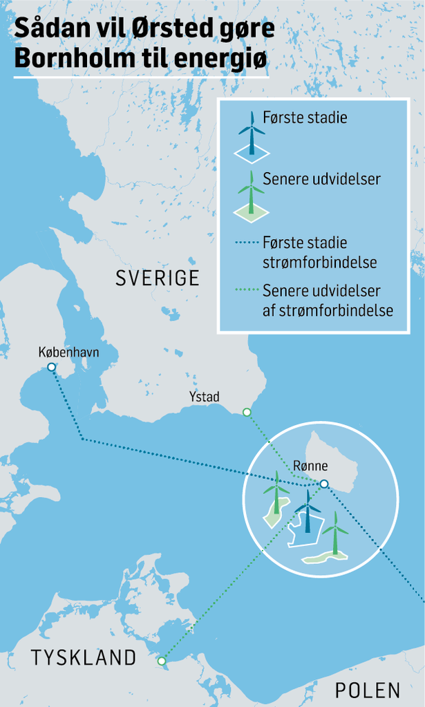 Det var en storstilet plan, energiselskabet Ørsted smed på bordet i november 2019: Bornholm skulle være en ’energiø’. Et regionalt kraftcenter for grøn strøm i Østersøen. Med så mange havvindmøller, at det kunne forsyne op mod 4-5 millioner husstande med strøm – i Østdanmark, Polen, Sverige og Tyskland. Og så endda have el tilovers til en fabrik, der kan producere grønt brændstof.